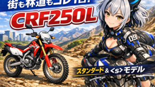 ※車両の画像はイメージです概要(どんなバイク?)ホンダ CRF250L は、オンロードの日常性とオフロードの走破性を両立した“デュアルパーパス”の定番モデル。通勤や街乗りを普通にこなしつつ、未舗装路や林道にも踏み込める「守備範囲の広さ」が魅...