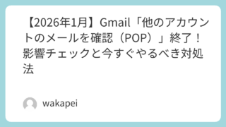2026年1月から、Gmail(パソコン版)の 「他のアカウントのメールを確認(POP)」 が使えなくなります。つまり、これまで 独自ドメインのメール(info@〜 など)やプロバイダメールをGmailに自動取り込みして“一元管理”していた...