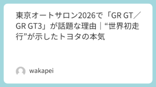 更新日:2026年1月11日東京オートサロン2026で、いちばん大きく話題を持っていったのは「GR GT」「GR GT3」だった。理由はシンプルで、“見せる”だけじゃなく、ファンの前で実際に走らせたからだ。コンセプトを匂わせるだけの展示は、...