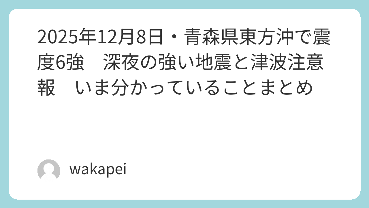 2025年12月8日・青森県東方沖で震度6強 深夜の強い地震と津波注意報 いま分かっていることまとめ
