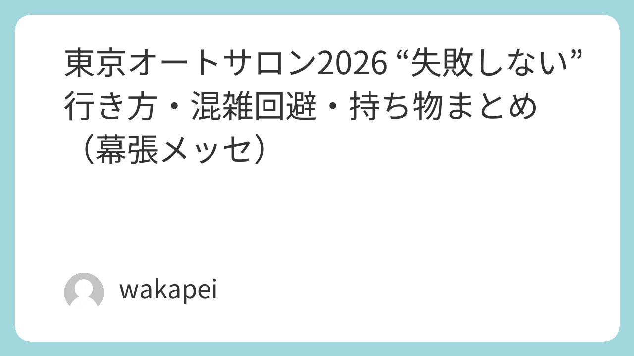 年始の恒例イベント「東京オートサロン2026」。会場はとにかく人が多く、行き方と時間配分で満足度が大きく変わるタイプのイベントです。この記事では、はじめての人でも迷わないように、開催時間・チケット・混雑回避・持ち物・回り方を一気にまとめます。