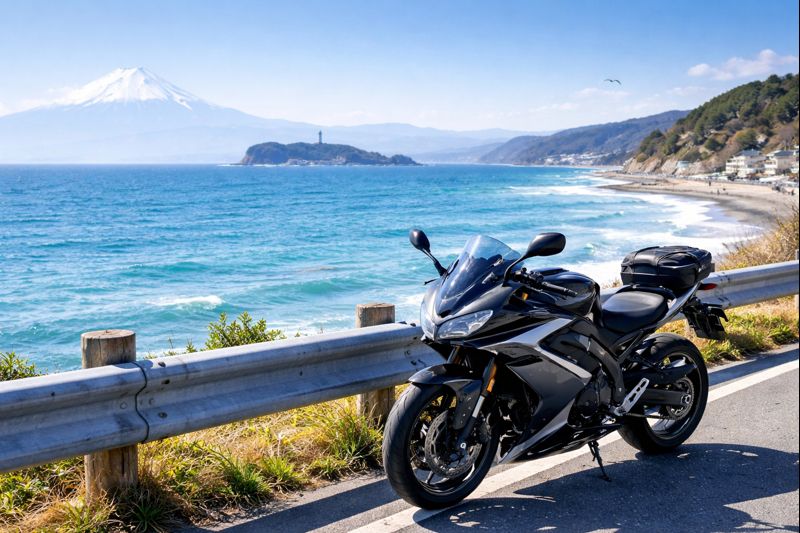 三浦半島は海沿いが気持ちよく、冬の澄んだ空気の日は景色が映えます。三浦海岸や三崎港(マグログルメ)など、ツーリング向けの立ち寄り先がまとまっているのも強み。