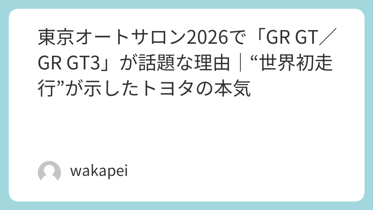 東京オートサロン2026でGR GT/GR GT3が話題になったのは、