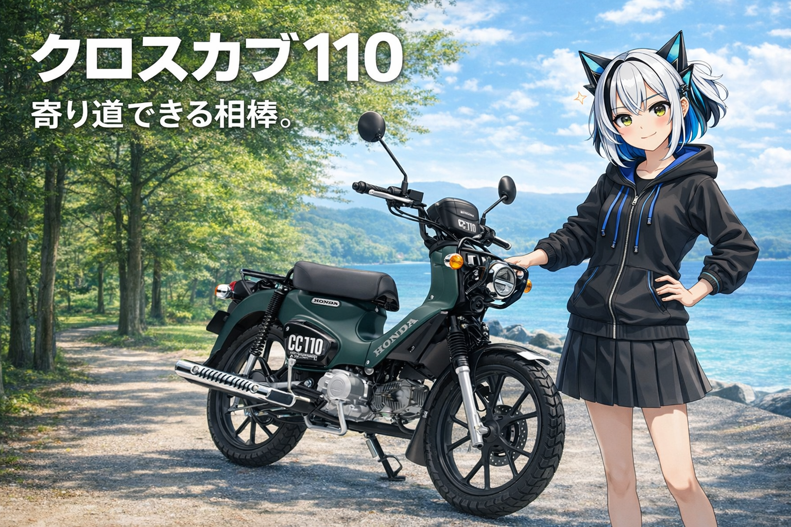 • クロスカブ110:同じ110でも“外遊びに寄った見た目と装備感”。「休日の寄り道」まで含めて楽しい。